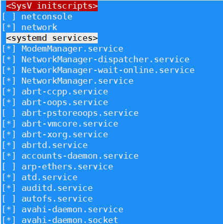 注意,在前面有星号的就是随着 Linux 启动自动启动的,没有的就是手动启动。使用空格可以切换是否自动启动。