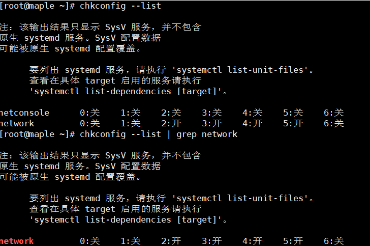chkconfig --level 级别 服务名 on/off:设置这个服务在某一个级别下是自启动还是关闭状态比如设置network在5级别下自启动: