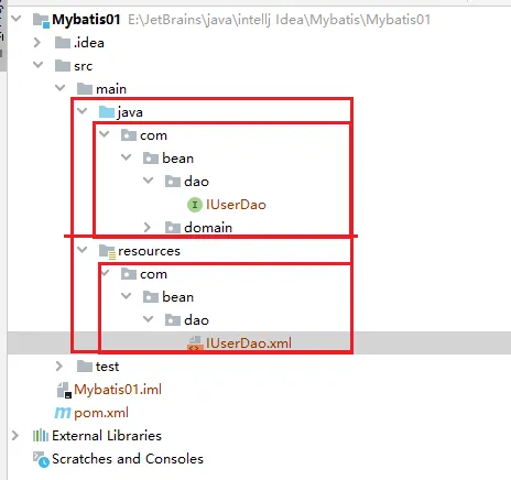 Mybatis中的dao层主要叫做Mapper,所以这里的IUserDao也叫做IUserMapper - idea中创建目录和包是不一样的