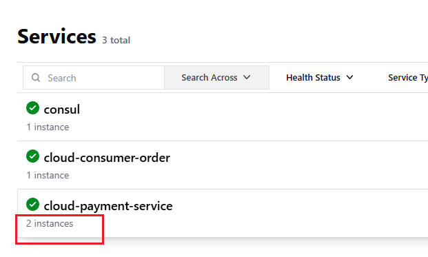 @LoadBalanced注解,此时就要发挥作用java@Configuration public class RestTemplateConfig { @Bean @LoadBalanced public RestTemplate restTemplate() { return new RestTemplate(); } }cloud-provider-payment-8001模块修改 controller,打印出 portjava@Value("${server.port}") private String port; @GetMapping(value = "/pay/get/info") private String getInfoByConsul(@Value("${causes.info}") String info) { return String.format("info: %s, port: %s", info, port); }每次调用