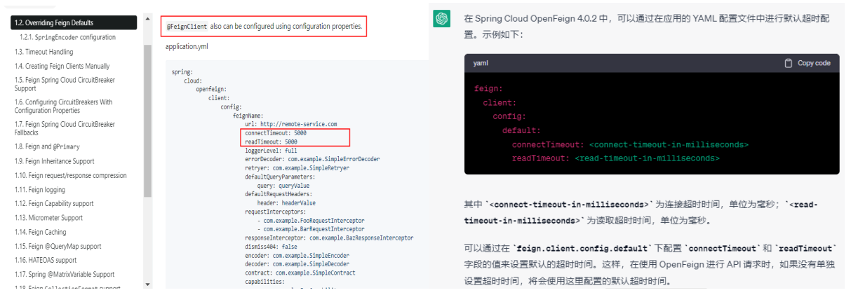 OpenFeign 除了以上内容外,还支持超时控制,也就是规定一个时间,超过这个时间还没有反应就直接报错,另外还有重试次数。