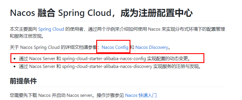 nacos 和 consul 配置一样,项目初始化的时候需要确保先从配置中心获取,拉取配置之后才能够保证项目的正常启动