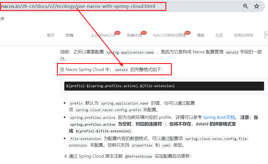 ${spring.application.name}-${spring.profile.active}.${spring.cloud.nacos.config.file-extension}本案例的 DataID 是: