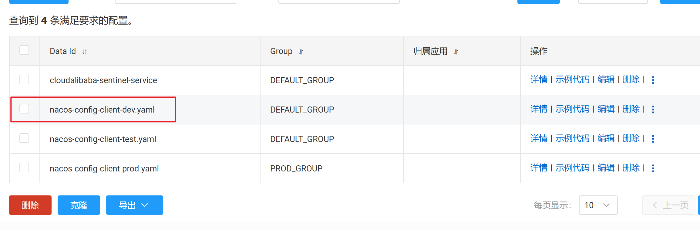 nacos-config-client-dev.yaml实际操作中,prefix 为当前项目 application.name 的值,spring.profile.active 为当前环境的值,file-extension 为配置文件的格式