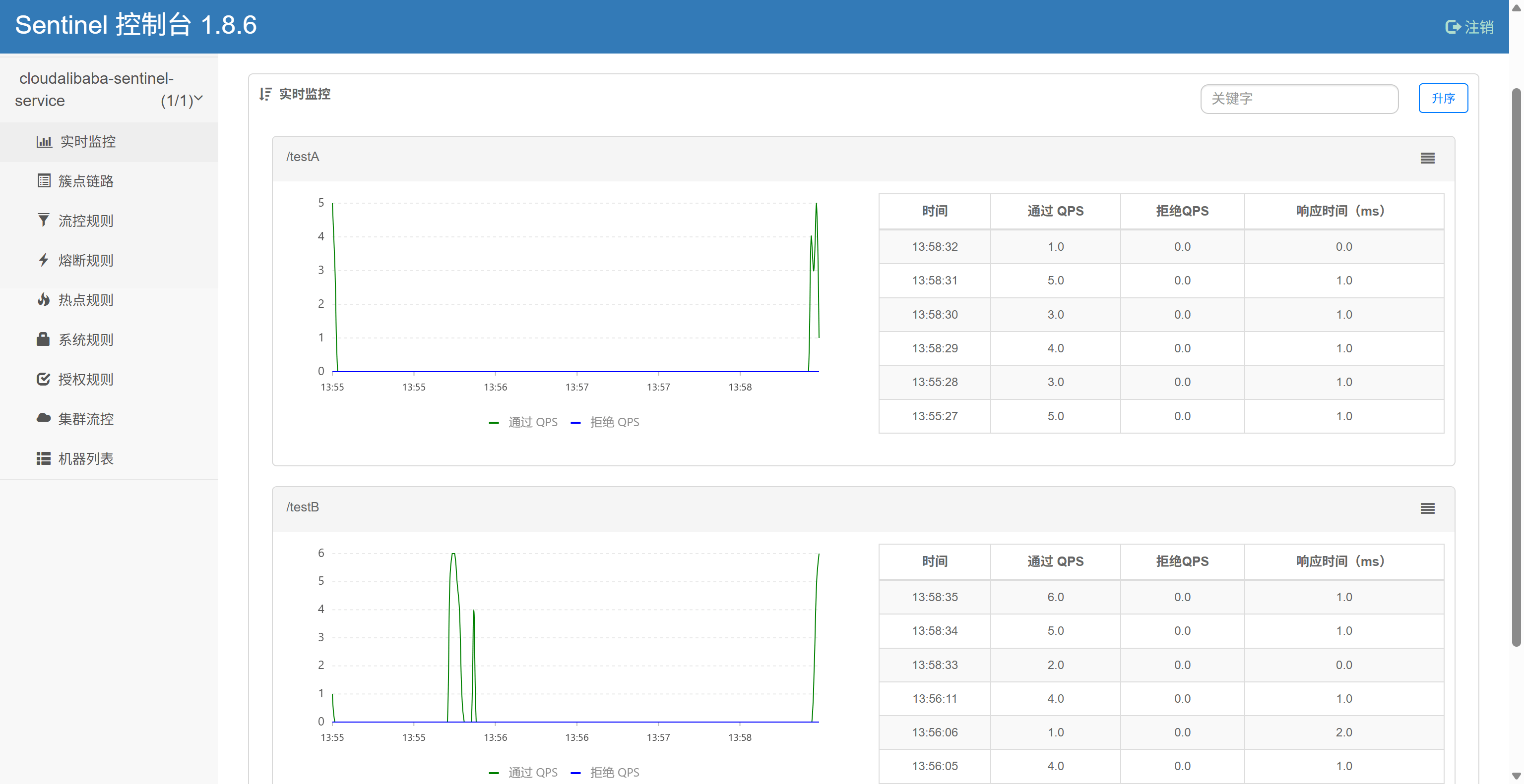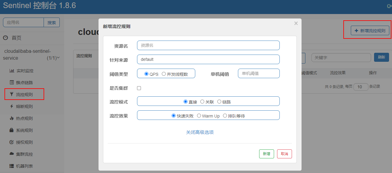 登录账户密码均为 sentinel,前端默认为 8080,后端默认 8719