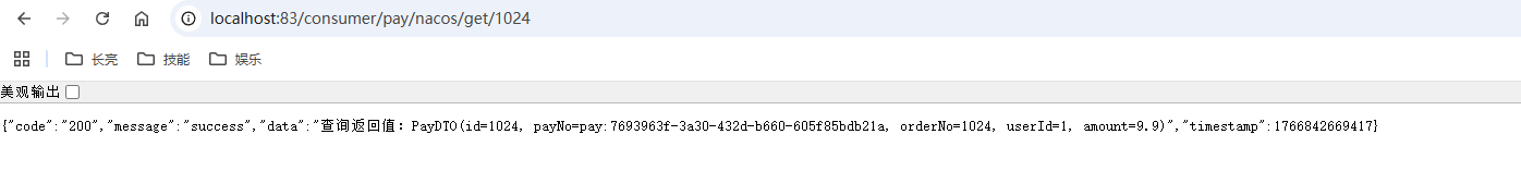 java@RestController public class OrderNacosController { @Resource private RestTemplate restTemplate; @Value("${service-url.nacos-user-service}") private String serverURL; @GetMapping("/consumer/pay/nacos/{id}") public String paymentInfo(@PathVariable("id") Integer id) { String result = restTemplate.getForObject(serverURL + "/pay/nacos/" + id, String.class); return result+"\t"+" 我是OrderNacosController83调用者。。。。。。"; } }启动,查看 nacos 服务情况
