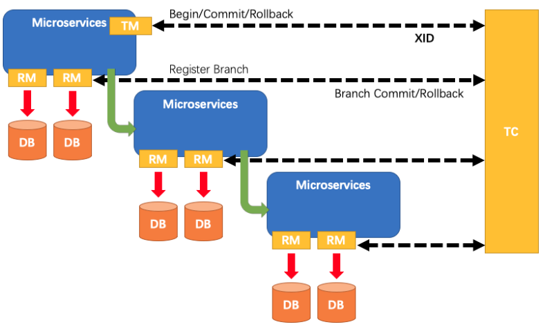 整个分布式事务的管理,就是全局事务 ID 的传递和变更,要让开发者无感知