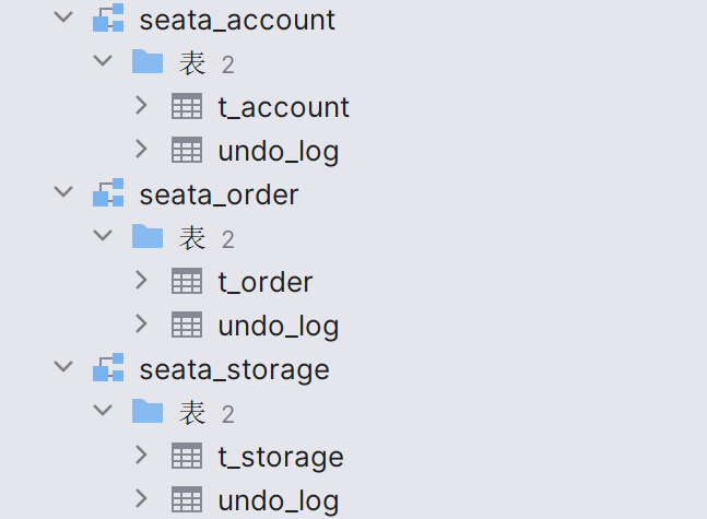 然后在各自的库下面分别建立 undo_log 回滚日志表,此表为 AT 模式下必须的,其余模式下不需要