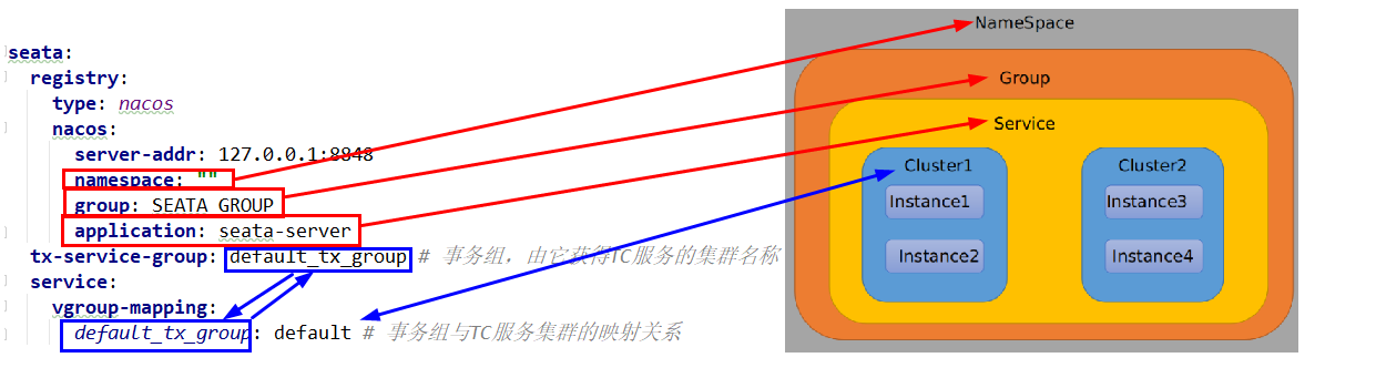 yamlserver: port: 2001 spring: application: name: seata-order-service cloud: nacos: discovery: server-addr: localhost:8848 #Nacos服务注册中心地址 # ==========applicationName + druid-mysql8 driver=================== datasource: type: com.alibaba.druid.pool.DruidDataSource driver-class-name: com.mysql.cj.jdbc.Driver url: jdbc:mysql://ubuntu_base_node:3306/seata_order?characterEncoding=utf8&useSSL=false&serverTimezone=GMT%2B8&rewriteBatchedStatements=true&allowPublicKeyRetrieval=true username: root password: root # ========================mybatis=================== mybatis: mapper-locations: classpath:mapper/*.xml type-aliases-package: com.colirx.cloud.pojo configuration: map-underscore-to-camel-case: true # ========================seata=================== seata: registry: type: nacos nacos: server-addr: 127.0.0.1:8848 namespace: "" group: SEATA_GROUP application: seata-server tx-service-group: default_tx_group # 事务组,由它获得TC服务的集群名称 service: vgroup-mapping: # 点击源码分析 default_tx_group: default # 事务组与TC服务集群的映射关系 data-source-proxy-mode: AT logging: level: io: seata: info config: classpath:logback.xml