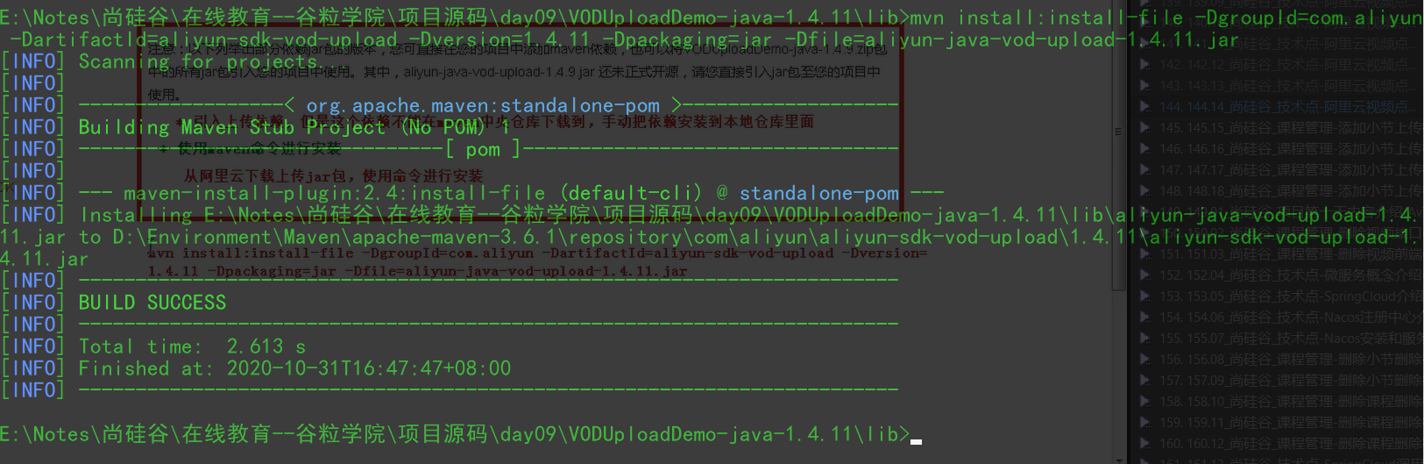 mvn install:install-file -DgroupId=com.aliyun -DartifactId=aliyun-sdk-vod-upload -Dversion=1.4.13 -Dpackaging=jar -Dfile=aliyun-java-vod-upload-1.4.13.jar