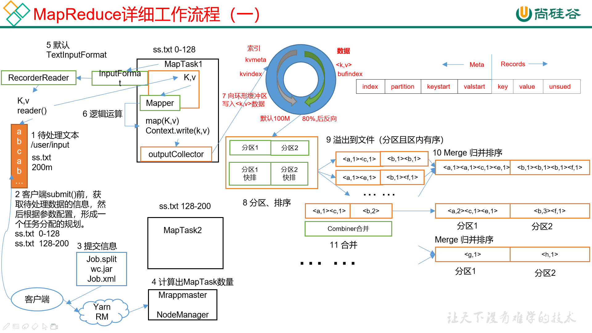 - MapTask:负责 Map 阶段的整个数据处理流程。