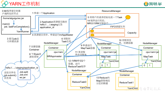 jar、切片信息、配置文件)到 HDFS 的路径/applicationId。 - 客户端发送给 Yarn 资源提交完毕的消息,申请运行 MR AM。