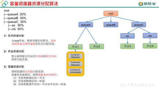 容量调度器中,任务的优先级执行顺序是按照资源的利用率来进行资源调度的。资源利用率低的队列会优先分配。