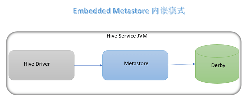 内嵌模式下,元数据存储在内置的 derby 中,这种情况下,一次仅支持一个用户,不适合生产环境。不做讲解。