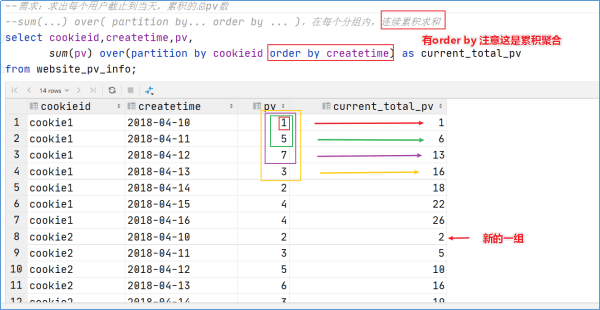 FROM website_pv_info;可以看到在上面的例子中,over 函数中有时没有条件,有时存在一个 PARTITION BY 的条件,有时还存在 ORDER BY 的条件。