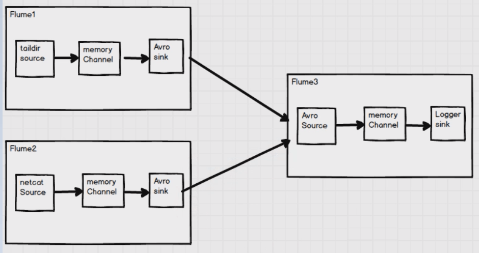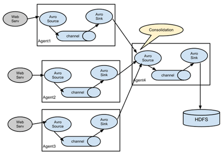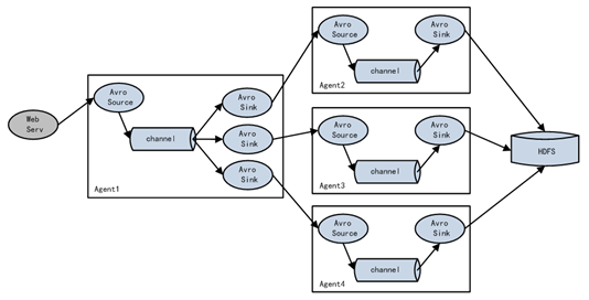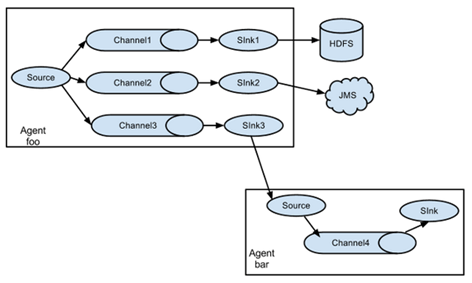 拓扑结构,也就是多个 agent 怎么去接,多个 agent 怎么去接,B 里面的 source 怎么去接 A 里面的 sink。