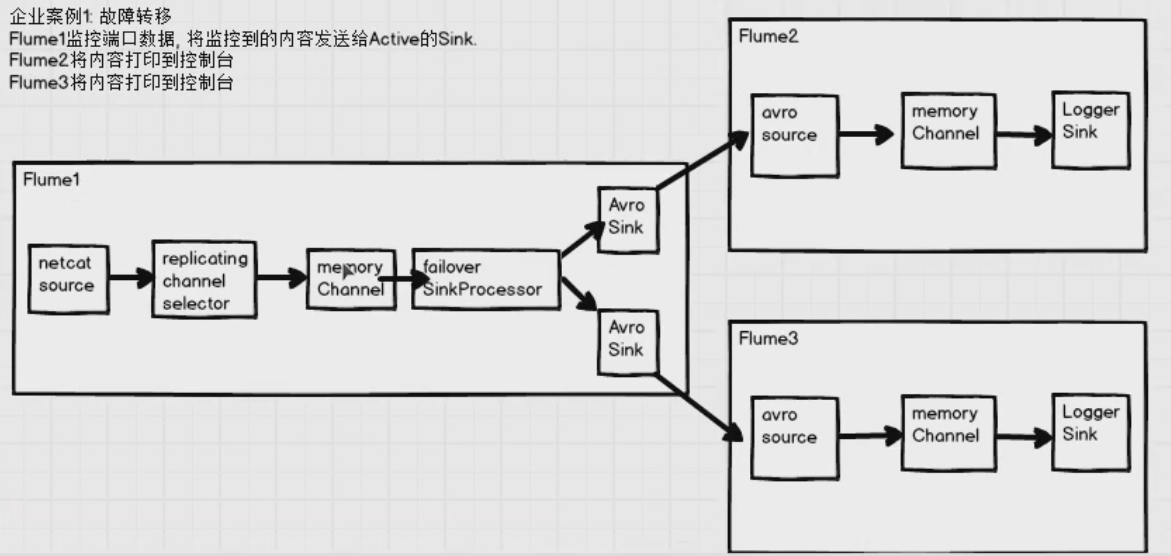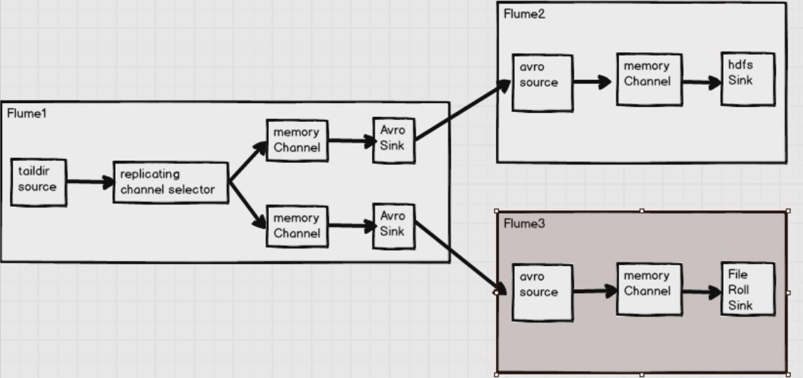 使用 Flume-1 监控文件变动,将变动内容传递给 Flume-2 和 Flume-3。Flume-2 存到 HDFS,Flume-3 存到本地文件系统。