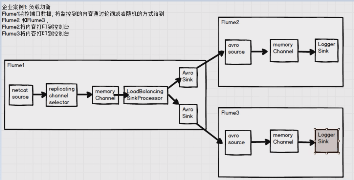 - load balancing sink processor:负载均衡的 sink processor,负载均衡策略是可以配置的,比如轮询、随机等。