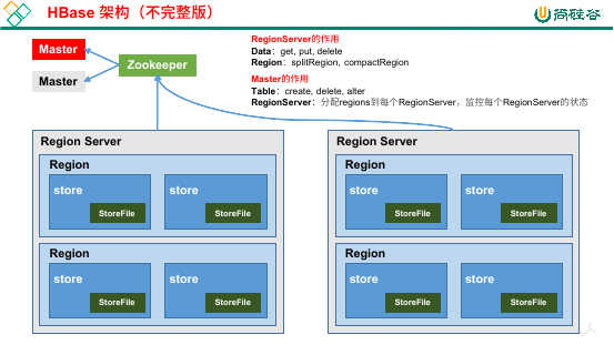 为了负载考虑,HMaster 可能会将多个 Region 分给多个 Region Server。我们之前提到,每一个 Region 的数据都会存储到一台机器上,这句话没错,但是一张表有可能会分为多个 Region,那多个 Region 就可能分散给不同的 Region Server。