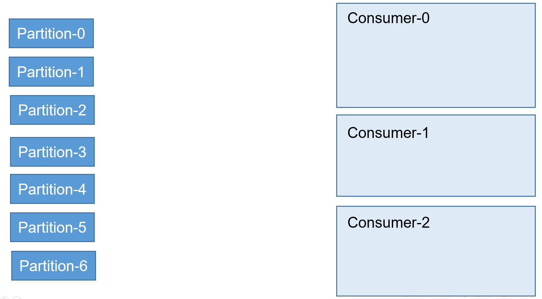 如果还有新的 partition 会按照 RoundRobin 的方式重新分配。