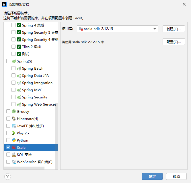 将 Scala 加入到 IDEA 中的全局库中,并且将框架假如到当前模块中。