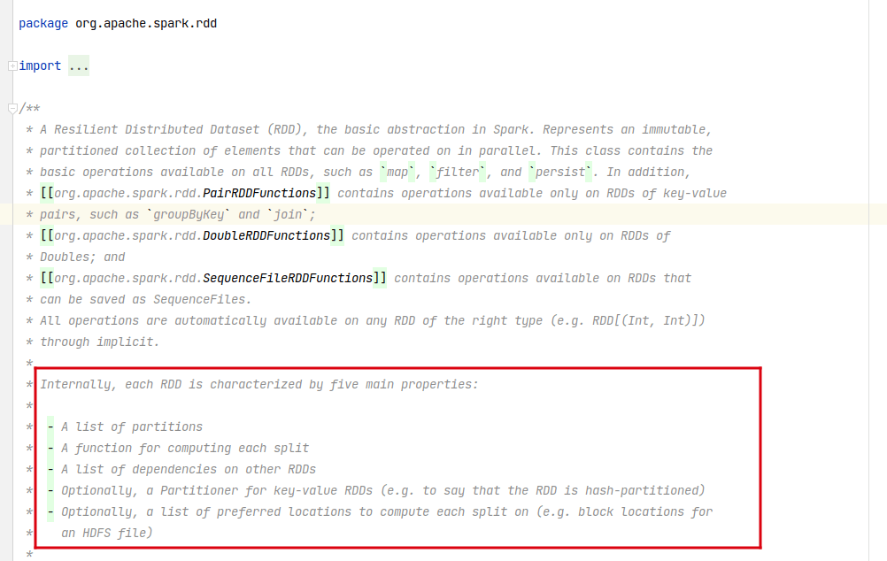 - 数据抽象:RDD 是一个抽象类,需要子类具体实现。