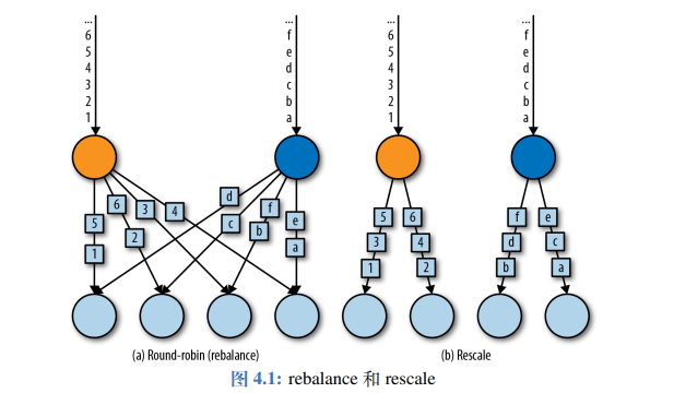 区别是:rebalance 是向下游的所有并行子任务进行数据发送。rescala 是向自己的下游并行子任务进行数据发送。