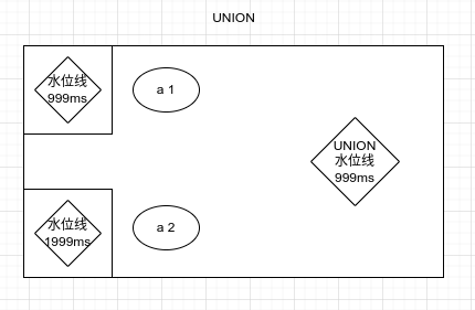}).print();当前有两条 stream,这两条 stream 在 union 的时候,union 算子会开启两个位置存放当前的事件,水位线则是取两者的最小值。