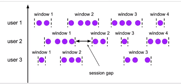 比如,我们每小时设置一个水位线。事件时间位于两点到三点的水位线中,那么就会归类到两点到三点的这个窗口中,以此类推。