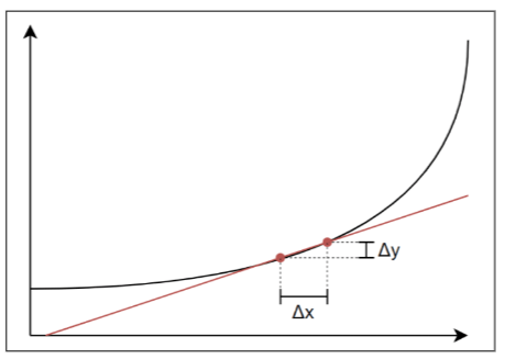 解释为: 当 变量的增量 无限趋近于 0 的时候, 就相当于一个点的切线, 我们将其叫做函数 在 的导数
