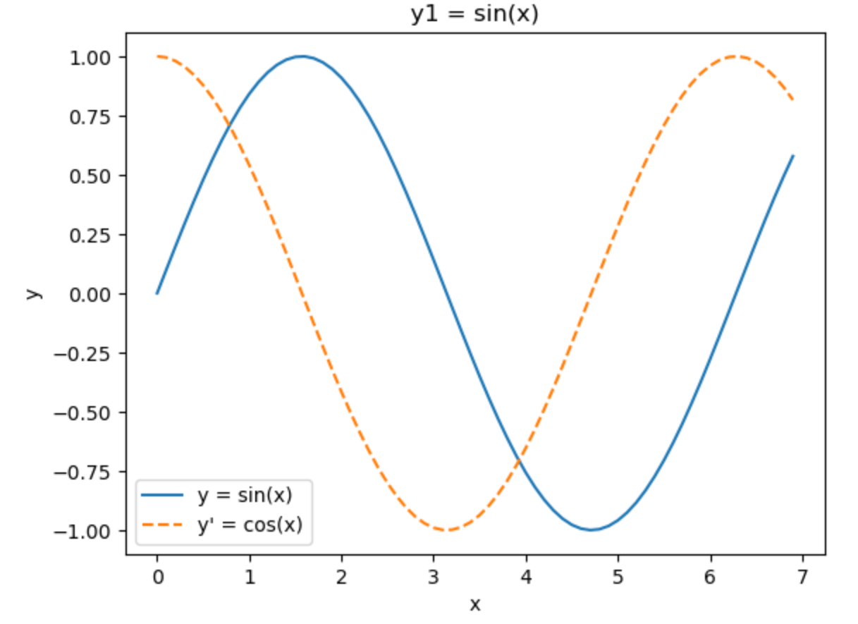 plt.plot(x, y1, label="y' = cos(x)", linestyle="--")