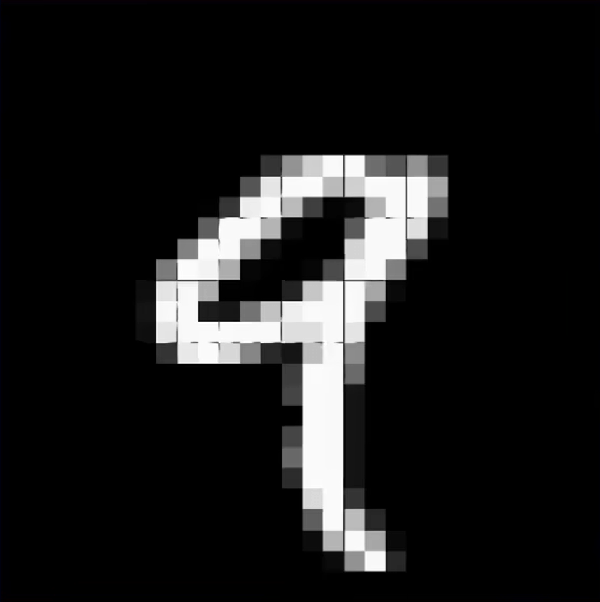 给定的图片是 28 x 28 的图片,每一个像素点都是一个神经元,本质上其实就是判断这些神经元所在的灰度值是否能够与相应数字的灰度值链接
