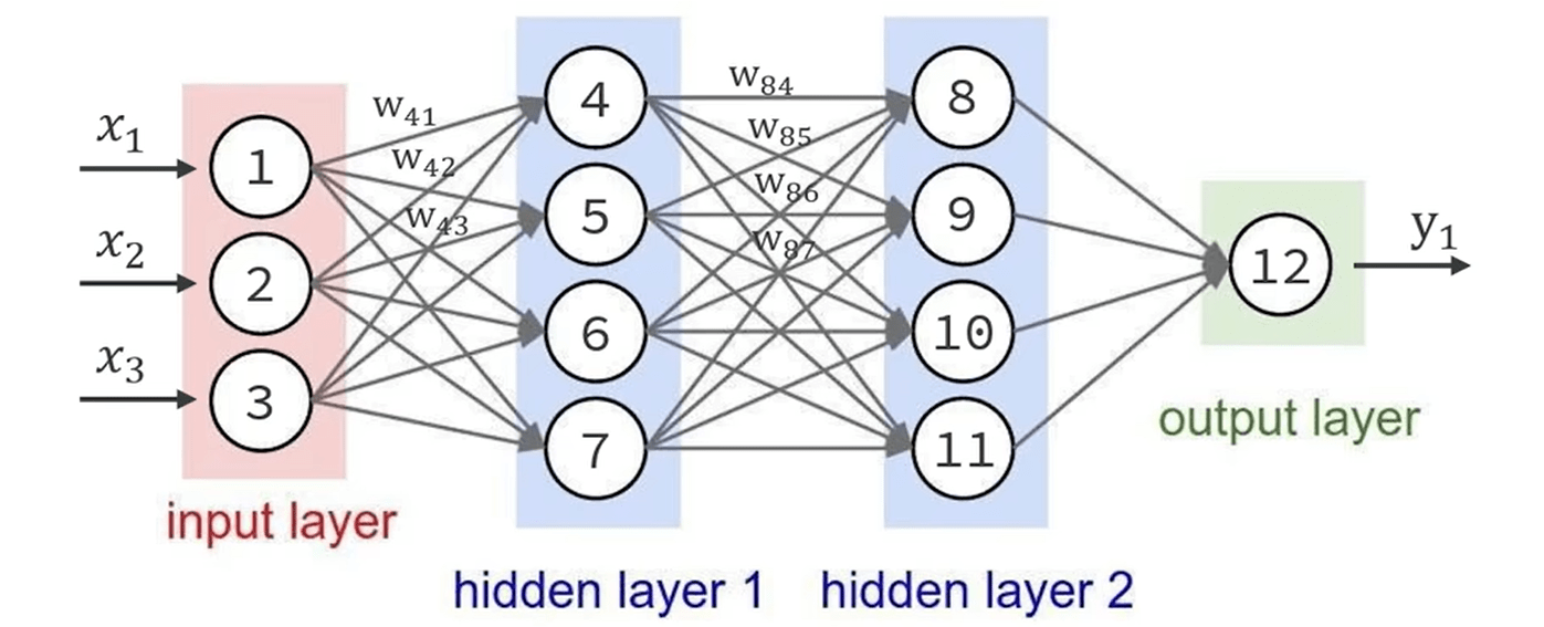 深度神经元网络分为很多层,分为:输入层(入口,接收数据)、隐藏层(信息处理和学习,可以有很多层)、输出层(出口,产生结果)
