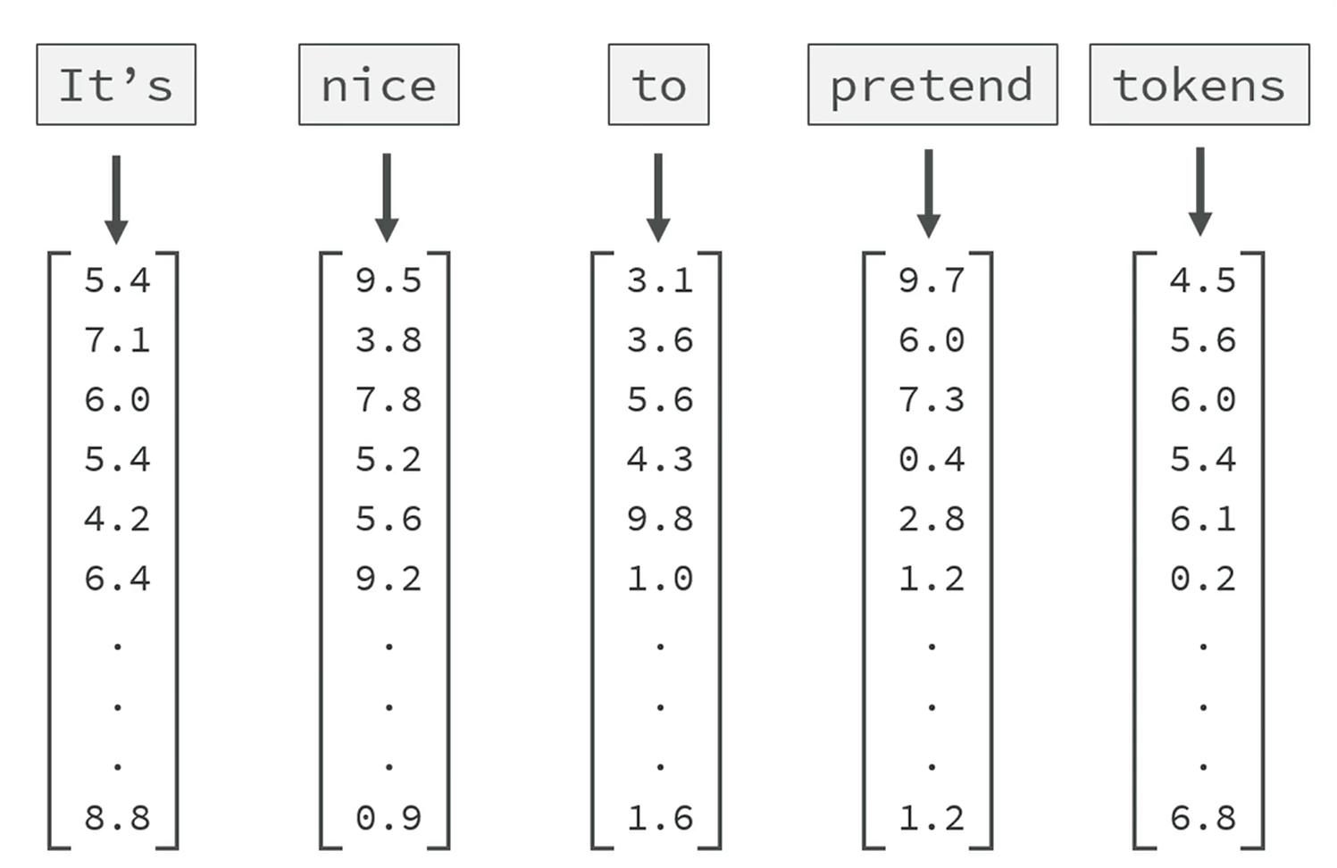 首先将人类语言拆成一个个片段,也就是 Token(词),然后 token 都经过模型计算转为一个浮点数数组作为向量坐标