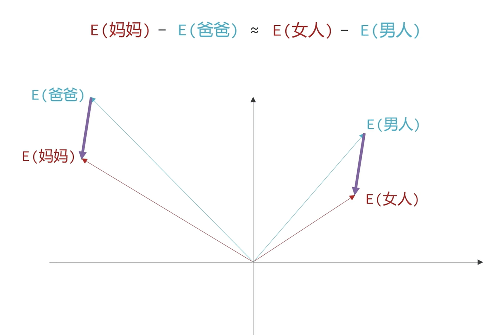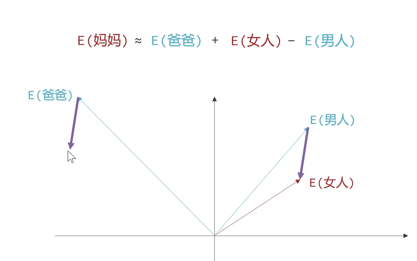 那么词向量的含义,比如下图中,我们发现当前的向量可以表达亲属含义和性别含义,那么我完全可以根据现有的关系来推算新的关系